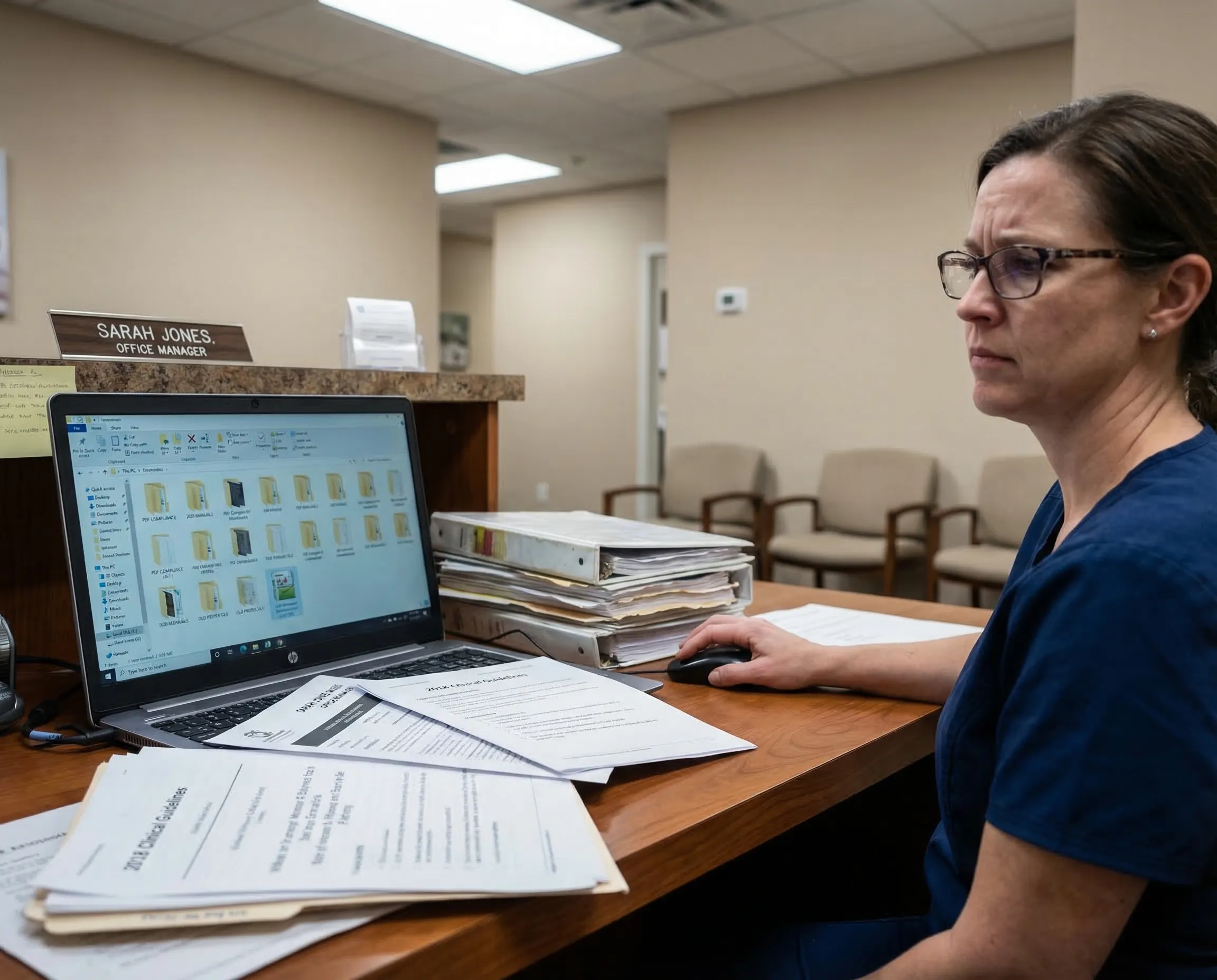 Clinical procedures buried in shared drives and outdated manuals.