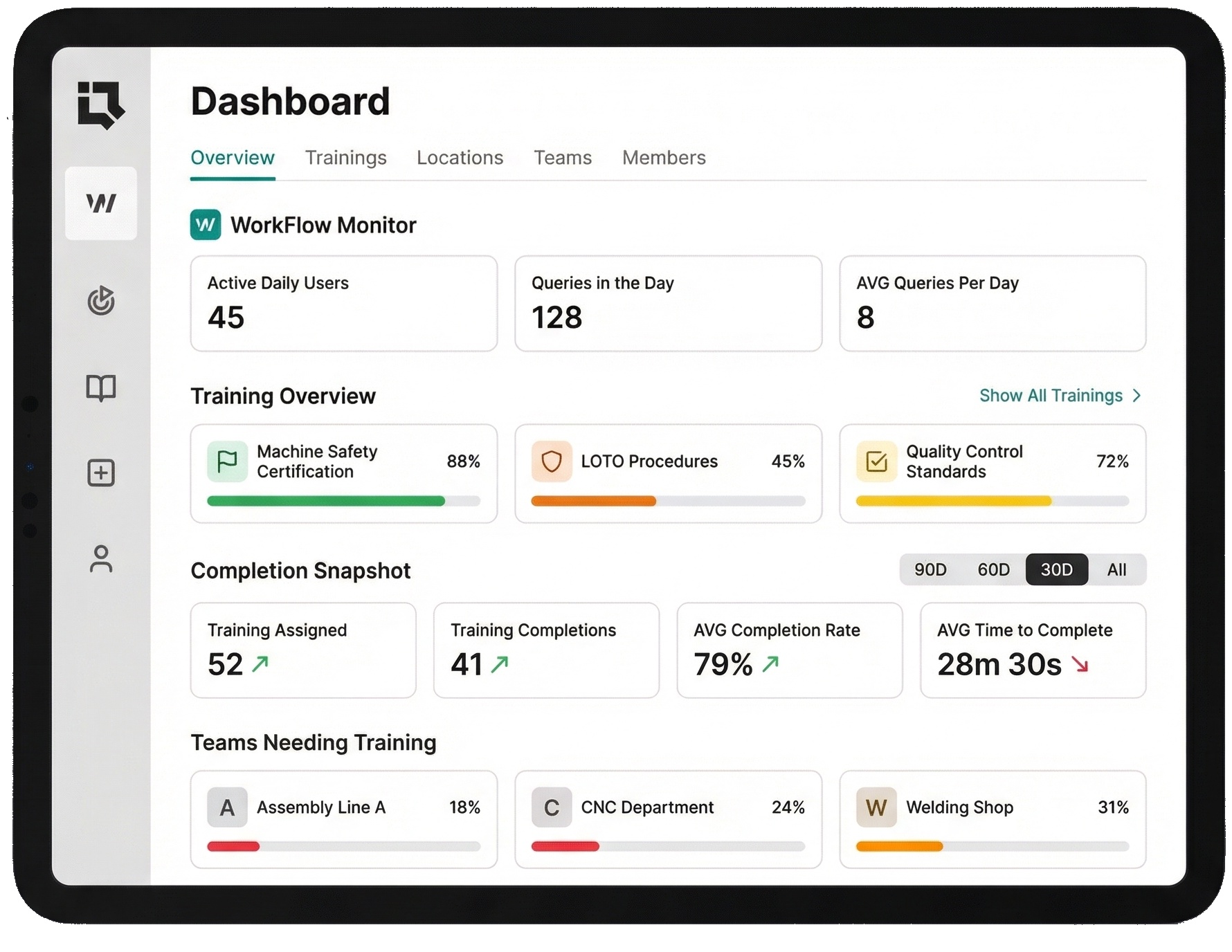 Who's trained. What's being asked. Where the gaps are. Real-time visibility across your entire operation.